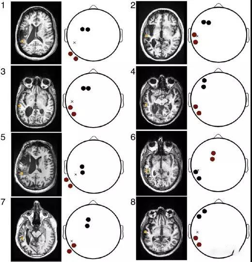 每个中风患者的电极蒙太奇位置(尽管只使用了两对电极)