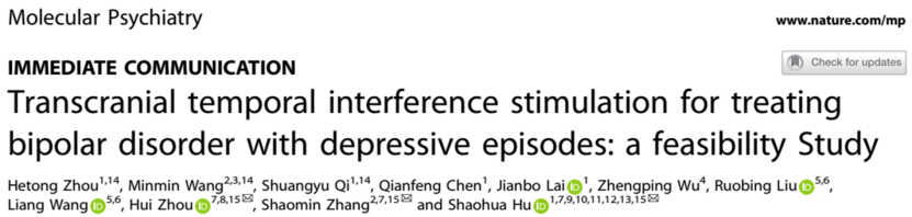 Zhou H, Wang M, Qi S, et al. Transcranial temporal interference stimulation for treating bipolar disorder with depressive episodes: a feasibility study. Mol Psychiatry. 2025.