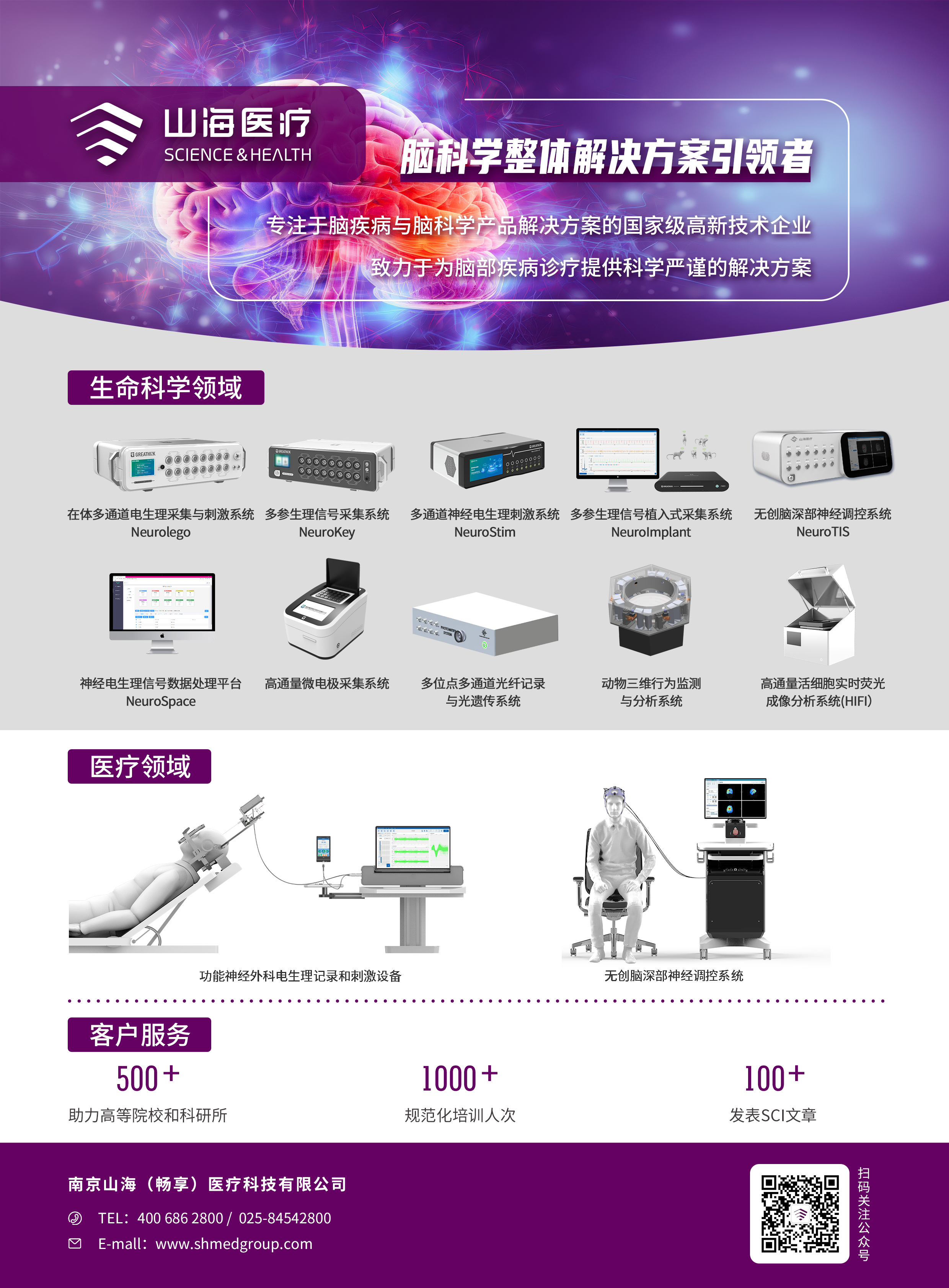 南京山海医疗科技有限公司是一家集研发、制造、营销于一体,专注于脑疾病与脑科学产品解决方案的科技型企业。公司不仅拥有传感器、芯片设计、核心算法等科学家团队,在产品落地与运营,市场与学术推广,临床产品方案设计与应用等方面有专业的团队。